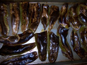 I like how you show to do it inside the kitchen. I have roasted them a few times outside on my gas grill. I just left them whole after washing and roasted until black. Then with gloved donned, I would peel and remove the top and inside at the same time. It comes off easily if you “burn” them. I hear that the Homeland on south 44th will be roasting them for free in their big rotating roaster this weekend.